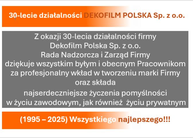 30 rocznica powstania Dekofilm Polska Sp. z o.o. (1995 - 2025)